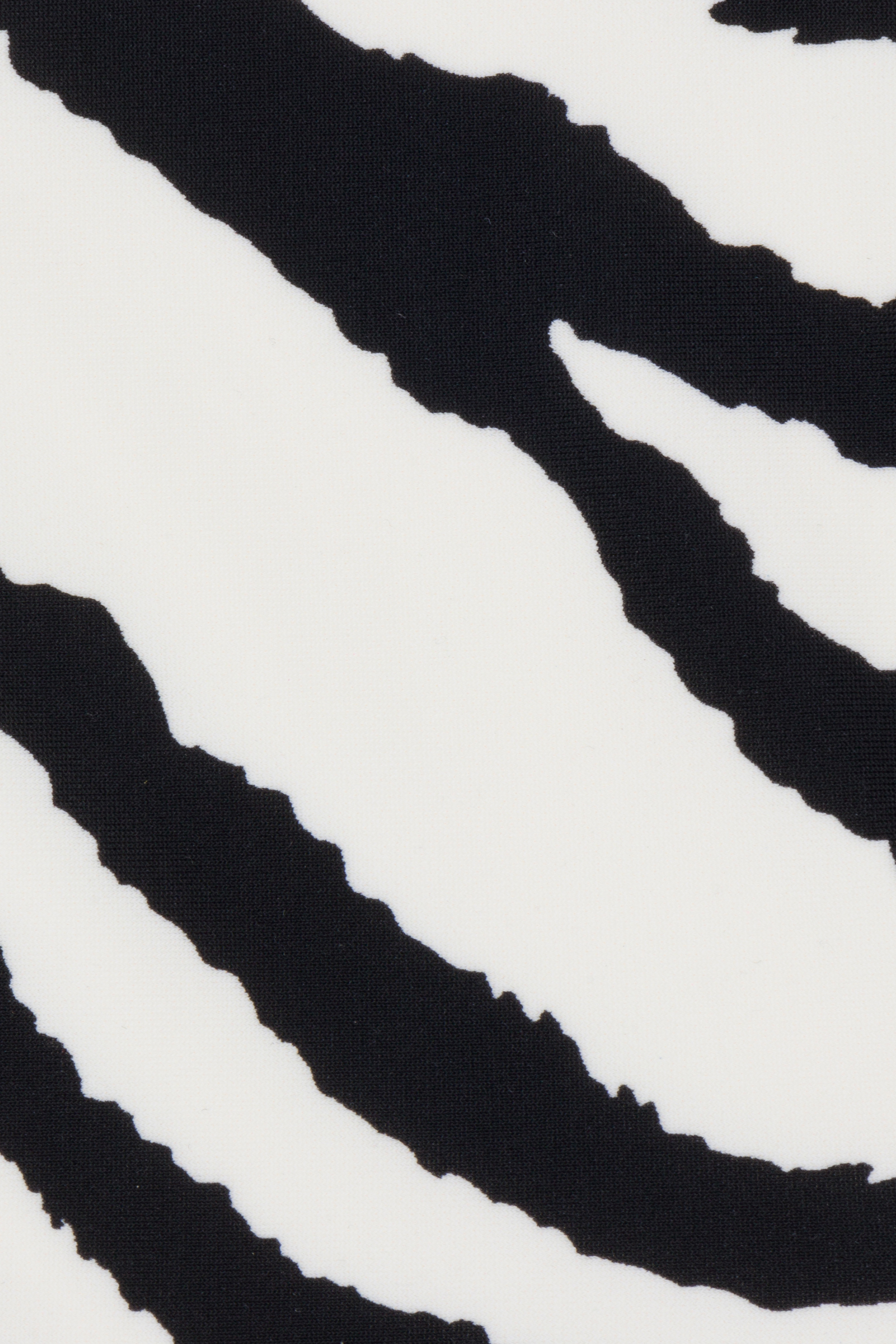 Woman wearing a zebra print bikini on a white background